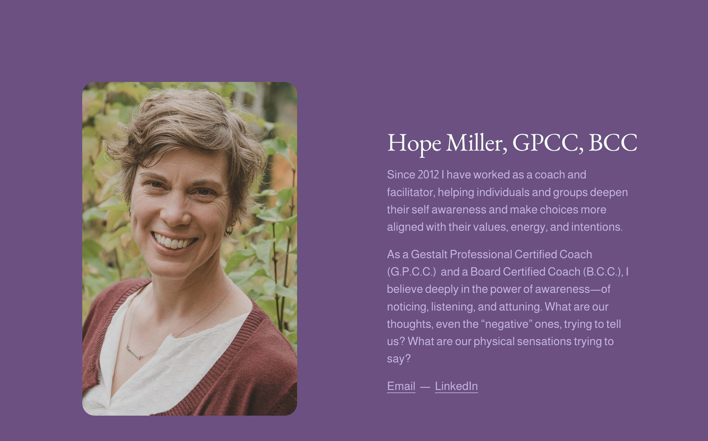 Sharpening the storytelling and deepening engagement for a psychotherapist and empath wishing for a more visible and memorable professional presence.